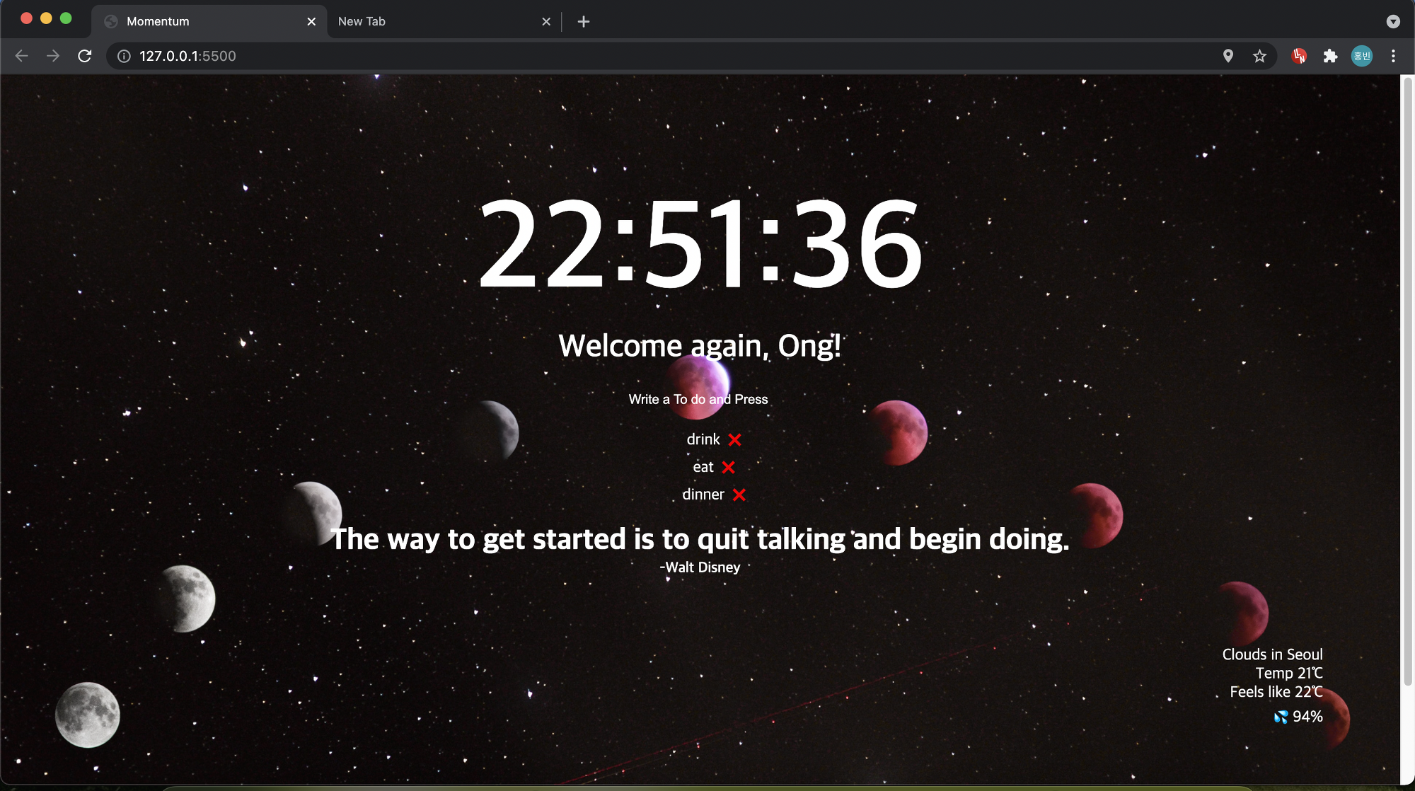 JS project - Chrome app with Vanilla JS. Contribute to Hong-been/Momentum development by creating an account on GitHub.